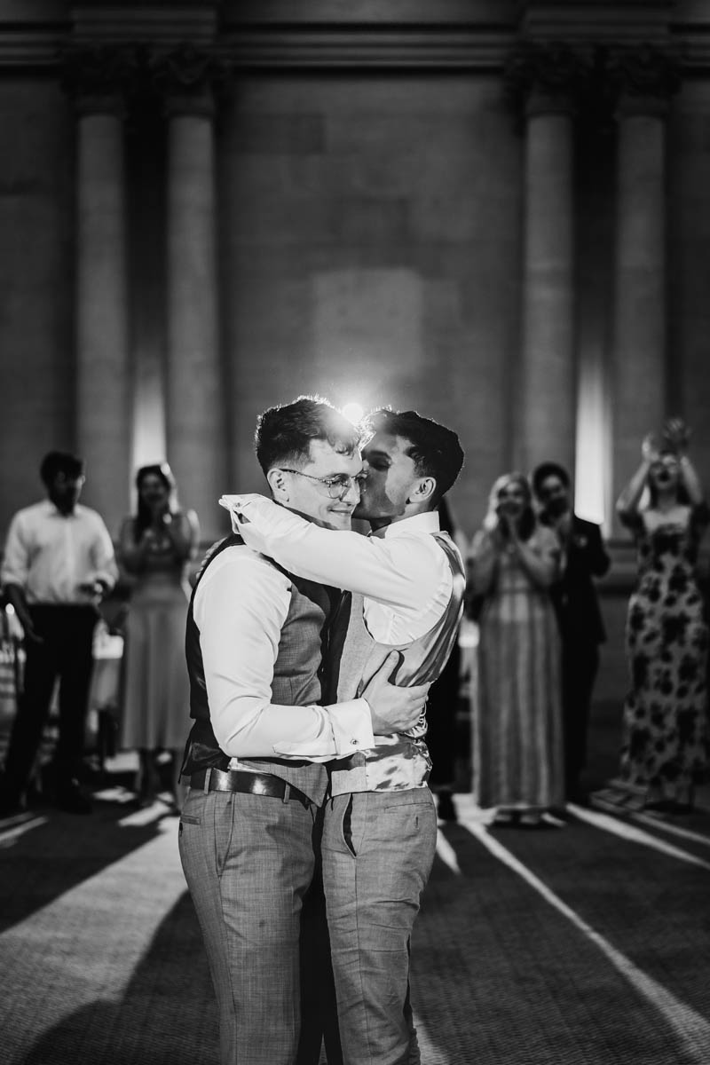 Once everyone had arrived, guests made their way upstairs and took their seats. Tarun waited at the top of the aisle with their wonderful celebrant. The three groom’s women walked in first, dressed not in matching bridesmaid dresses but in outfits they each felt completely comfortable in. Kieran followed and walked up the aisle with his brother, who proudly wore his navy uniform.