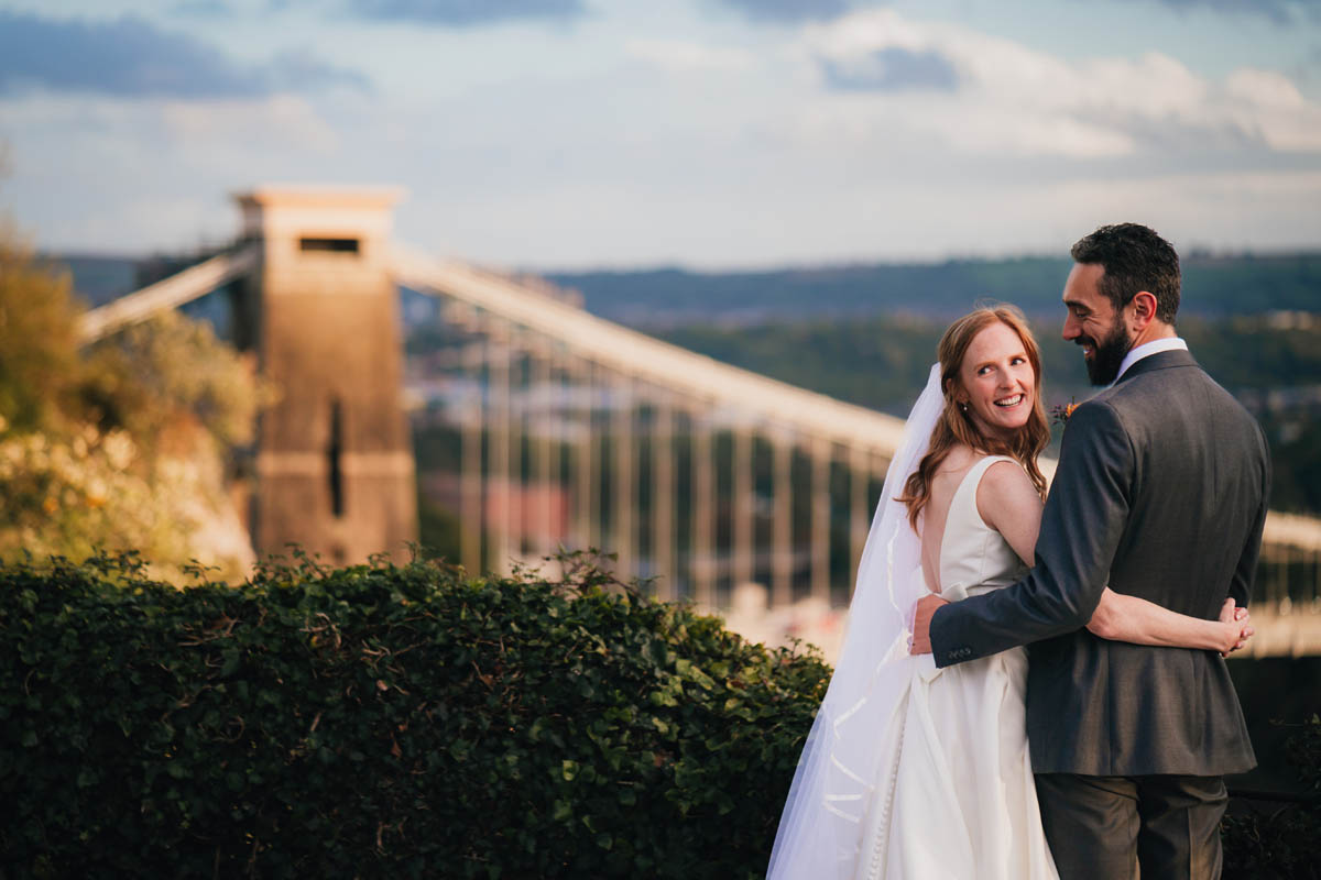 Clifton Observatory is one of the most iconic places for wedding photographs in Bristol. The suspension bridge is a stunning backdrop with a ton of wow factor! It also catches some stunning golden hour light just before sunset, making it the perfect spot for natural, informal wedding photos that celebrate the wonderful city of Bristol.