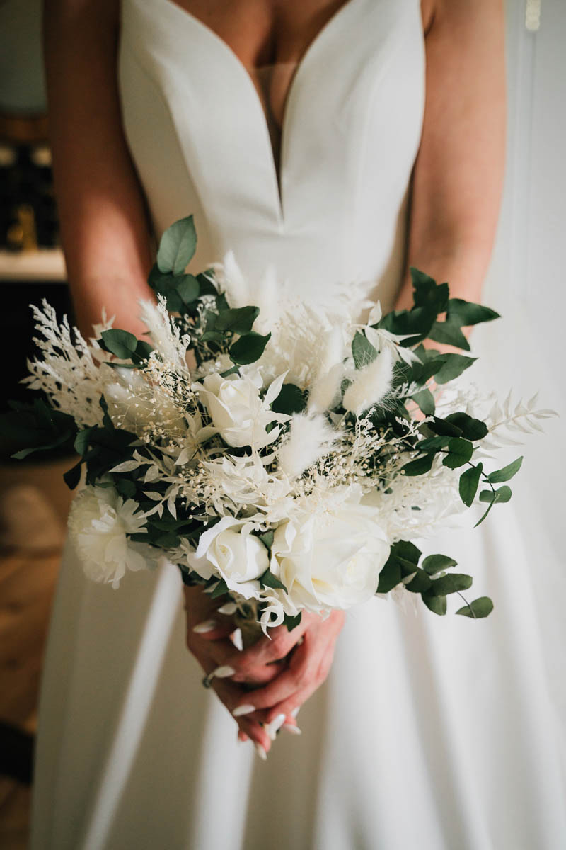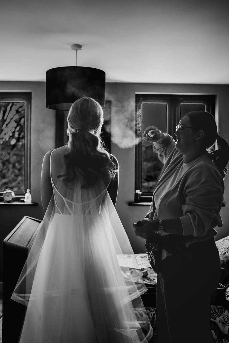 The morning began quietly at Lindsay’s home in Madley, Herefordshire, where she was finishing her hair and makeup and stepping into her bridal gown when I arrived.